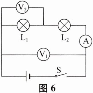 2. 如图6所示电路中,电源电压不变,闭合开关S,电路正常工作.一段时间后,发现三个电表中有一个电表的示数突然变为0.若电路中只存在一处故障,且只发生在灯$L_{1}或L_{2}$处.