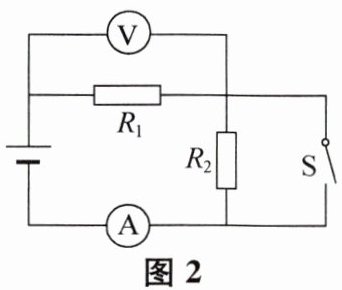 6. 在如图2所示的电路中,电源电压不变,当开关$S$由断开到闭合时,电流表$A$示数