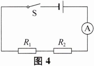 8. 如图4所示的电路中,电源电压保持不变,电阻$R_{1}$、$R_{2}的阻值均为R_{0}$.开关$S$闭合,电流表$A的示数为I_{0}$.若用另外一个电阻$R_{3}替换R_{1}$、$R_{2}$中的某一个,替换后,电流表$A的示数为0.5I_{0}$.电阻$R_{3}$的阻值为