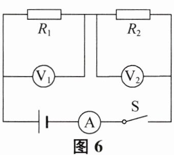 2. 在图6所示的电路中,已知电源电压为U₀保持不变.闭合开关S,电路正常工作.一段时间后,观察到三个电表中有两个电表的示数突然变小.若电路中仅有一处故障,且只发生在电阻$R_1$或$R_2$处.请根据以上信息,回答下列问题.