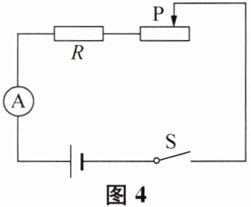 1. 图4所示电路中,电源电压不变. 开关$S$闭合时,电流表$A的示数为I_{0}$,电阻$R消耗的电功率为P_{0}$. 若移动变阻器的滑片使电流表的示数为$2I_{0}$,则电阻$R$消耗的电功率为