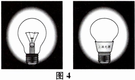 1. 新型高效节能灯与传统白炽灯相比,具有光效高、节能、使用寿命长等优点. 如图 4 所示,一只额定功率为$11W$的节能灯,其照明效果与一只额定功率为$66W$的白炽灯相当,若两灯均正常工作,通过白炽灯的电流为