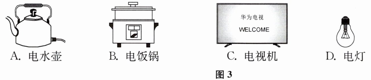 10. 如图 3 所示的家用电器都正常工作时,相同时间内消耗电能最少的是 (