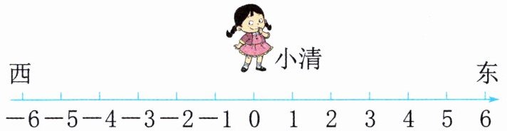 (1) 小清从0点的位置向西走了5格,由于向西走是负方向,因此她走到了$-5$点的位置。