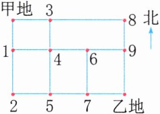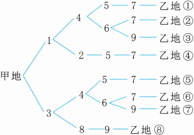 如图,从甲地到乙地,把必须经过的路口按顺序一一列举出来就可以了。