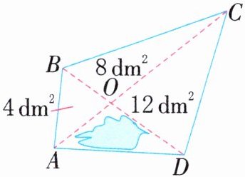 8÷4=2 三角形 AOD 的面积:12÷2=6(dm²) 涂色部分的面积:4+8+12+6-26=4(dm²)