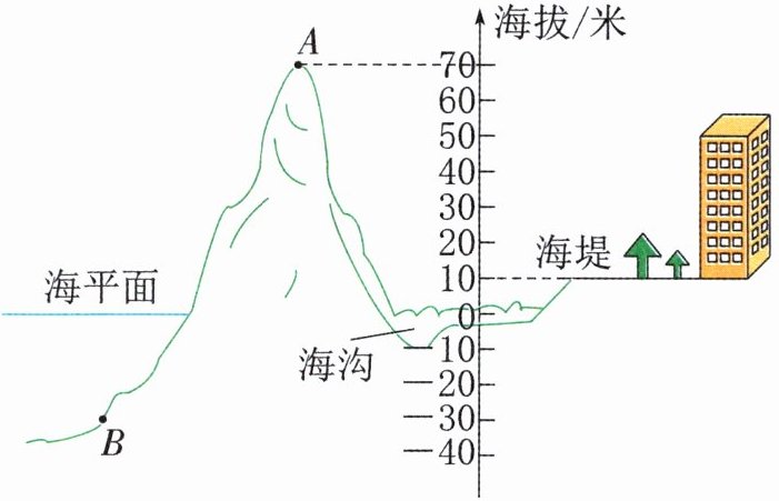 10909-10850=59(米) 鲨鱼A在海拔-59米深处 59+5=64(米) 鲨鱼B在海拔-64米深处