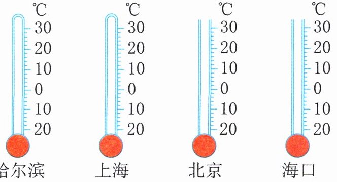 (1)这天哈尔滨、上海、北京、海口的最高气温分别是(