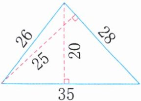 2. 小红写出了一些计算下图中三角形(单位:厘米)面积的算式:① $ 28 × 25 ÷ 2 $;② $ 28 × 20 ÷ 2 $;③ $ 26 × 20 ÷ 2 $;④ $ 35 × 25 ÷ 2 $;⑤ $ 26 × 25 ÷ 2 $;⑥ $ 35 × 20 ÷ 2 $。其中,正确的算式有(
