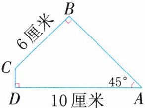 3. 如图,在四边形ABCD中,$∠A= 45^{\circ }$,$∠B= ∠D= 90^{\circ }$,$AD= 10$厘米,$BC= 6$厘米。求四边形ABCD的面积。