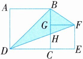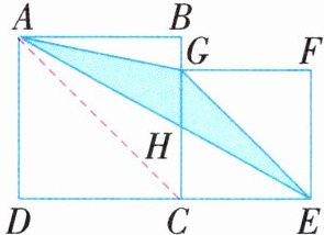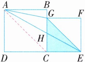 连接AC。因为三角形AGC的面积=GC×AB÷2,三角形ACE的面积=CE×AD÷2,且GC=CE,AB=AD,所以三角形AGC的面积=三角形ACE的面积。则三角形AGC的面积-三角形ACH的面积=三角形ACE的面积-三角形ACH的面积,即三角形AGH的面积=三角形CEH的面积。因此涂色部分的面积等于三角形GCE的面积。