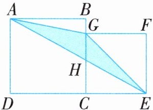 因为三角形AGC的面积$=GC×AB÷2$,三角形ACE的面积$=CE×AD÷2$,而$GC= CE$,$AB= AD$,所以三角形AGC的面积= 三角形ACE的面积。