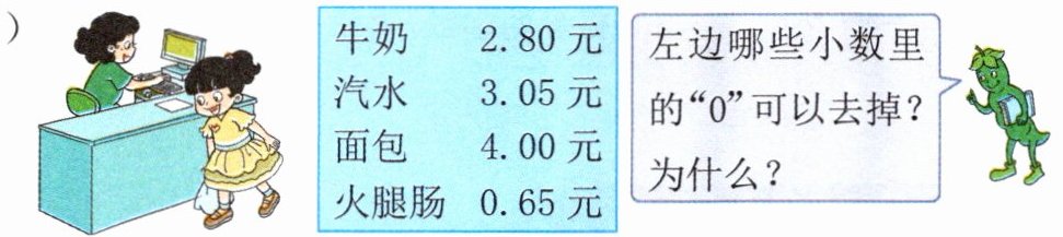 $2.80$末尾的$0$可以去掉,因为它是小数末尾的$0$,去掉后小数的大小不变;