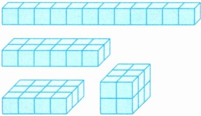 思路导引:用 12 个相同的小正方体摆成一个大长方体,有四种摆法,如图:
