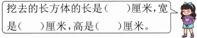 所以挖去的长方体的长是:$12 - 2 = 10$(厘米),宽是$2$厘米,高是$2$厘米。