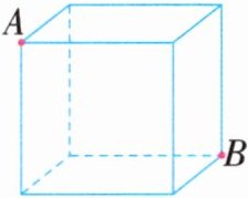 例题3 如图,一只蚂蚁要从正A方体的顶点A处爬到顶点B处,请你帮它设计一条最短路线。这样的最短路线有几条?