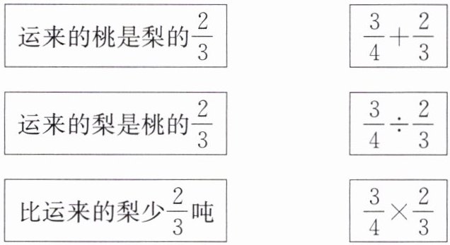 水果店运来桃$\frac{3}{4}$吨,( )。运来梨多少吨?
