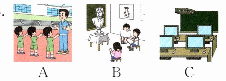 听录音,圈出与所听内容相符的图片。(听两遍)