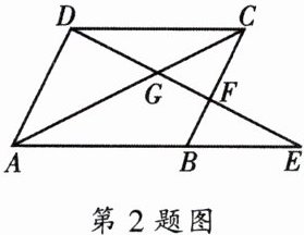 2. 如图,四边形$ABCD$是平行四边形,已知$E是AB$延长线上一点,$DE分别交对角线AC于点G$,边$BC于点F$. 下列选项中错误的是 (