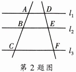 2. 如图,已知$l_{1}// l_{2}// l_{3}$,则下列结论正确的是 (