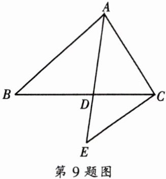 9. 如图,已知在$\triangle ABC$中,$∠BAC的平分线AE交BC于点D$,联结$EC$,且$∠B= ∠E$.
