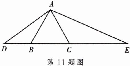 11. 如图,已知$\triangle ABC$是等边三角形,点$D$、$E在直线BC$上,$∠DAE= 120^{\circ}$.