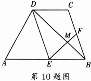 10. 如图,在梯形$ABCD$中,已知$AB// CD$,且$AB= 2CD$,点$E$、$F分别是AB$、$BC$的中点,$EF与BD相交于点M$.
