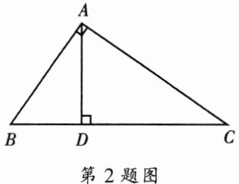 2. 如图,在$\triangle ABC$中,已知$∠BAC= 90^{\circ },AD⊥BC$于点D.若$AB= 2,BC= 3$,则DC的长是 (