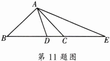 11. 已知在$\triangle ABC$中,D、E是射线BC上的两点,且$BD= AB,CE= AC$.