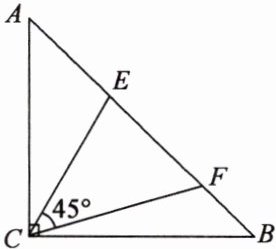 如图,已知$\triangle ABC$中,$∠ACB= 90^{\circ },AC= BC$,点E、F在AB上,$∠ECF= 45^{\circ }$.