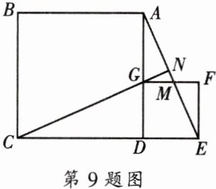 9. 如图,已知正方形ABCD和正方形DEFG,点G在边AD上.联结AE,交FG于点M,联结CG,并延长交AE于点N.