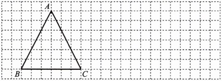 如图,在下列方格图中,将等腰三角形 $ ABC $ 缩小,缩小后图形对应线段的比值为 $ \frac{1}{2} $.