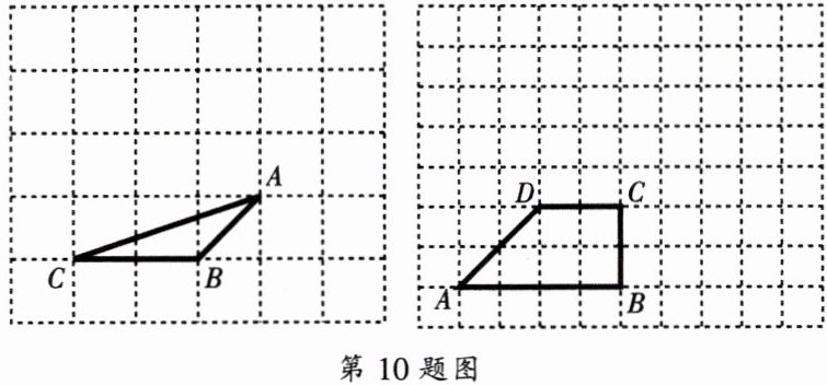 10. 在下列方格图中,分别画出 $ \triangle ABC $ 和四边形 $ ABCD $ 的一个相似图形.