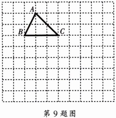 9. 如图,请在方格图中画出一个与 $ \triangle ABC $ 相似且相似比不为 $ 1 $ 的 $ \triangle DEF $. ($ D $、$ E $、$ F $ 必须在方格图的交叉点上)