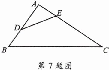 7. 如图,在$\triangle ABC$中,$AB= 10$,$AC= 15$,点D、E分别在AB、AC上,使$∠AED= ∠B$,$S_{\triangle ADE}= 4$,$S_{\triangle ABC}= 25$.求AD、AE的长.