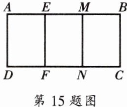 15. 如图,矩形ABCD中,已知点E、M和F、N分别是AB、DC的三等分点.设$\overrightarrow {AB} = \overrightarrow a$,$\overrightarrow {DA} = \overrightarrow b$,试用向量$\overrightarrow a$、$\overrightarrow b表示向量\overrightarrow {AE}$、$\overrightarrow {AD}$,并写出图中与$\overrightarrow {AE}$、$\overrightarrow {AD}$相等的向量.
