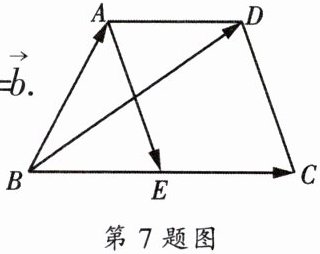 7. 如图,在梯形$ABCD$中,$AD// BC$,$BC= 2AD$,$E是BC$的中点.已知$\overrightarrow {BC}= \overrightarrow {a}$,$\overrightarrow {BA}= \overrightarrow {b}$.