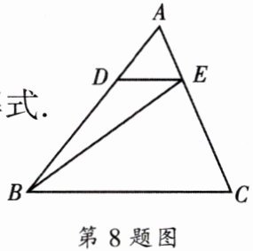 8. 如图,已知点$D$、$E分别在\triangle ABC的边AB$、$AC$上,$DE// BC$,$AD= \frac {1}{2}DB$,如果向量$\overrightarrow {BA}= \overrightarrow {a}$,向量$\overrightarrow {BC}= \overrightarrow {b}$.
