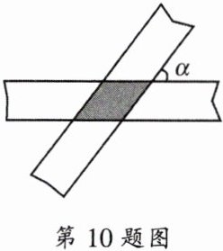 10. 如图,两条宽度都为1的纸条交叉重叠放在一起,且它们的夹角为$α$,则它们重叠部分(图中阴影部分)的面积为