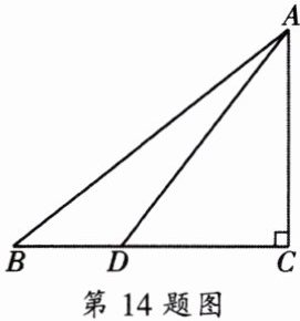 14. 如图,在$△ABC$中,已知$∠C = 90^{\circ}$,点$D在BC$上,$BD = 4$,$AD = BC$,$cos∠ADC= \frac{3}{5}$.