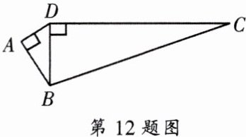 12. 如图,在四边形$ABCD$中,已知$∠BAD = ∠BDC = 90^{\circ}$,且$AD = 3$,$sin∠ABD= \frac{3}{5}$,$sin∠DBC= \frac{12}{13}$,求$AB$、$BC$、$CD$的长.