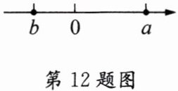 12. 已知 a、b 在数轴上的位置如图所示,则$\sqrt {b^{2}}+\sqrt {(a-b)^{2}}-|b-a|$的化简结果是