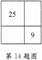 14. 已知一个大正方形内的两个小正方形,面积如图所示,求大正方形的面积.