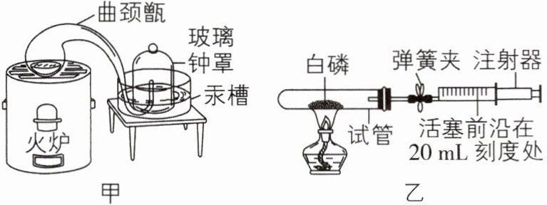 (1)拉瓦锡用装置甲定量研究了空气的成分。曲颈甑和汞槽内均有汞,其中曲颈甑内汞的作用是
