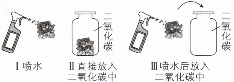 6[2025湖北宜昌质检]为探究二氧化碳能否和水反应,用三朵被石蕊溶液染成紫色的干燥小花完成如图三个实验。实验Ⅰ、Ⅱ中小花不变色,实验Ⅲ中小花变红。下列说法不正确的是(
