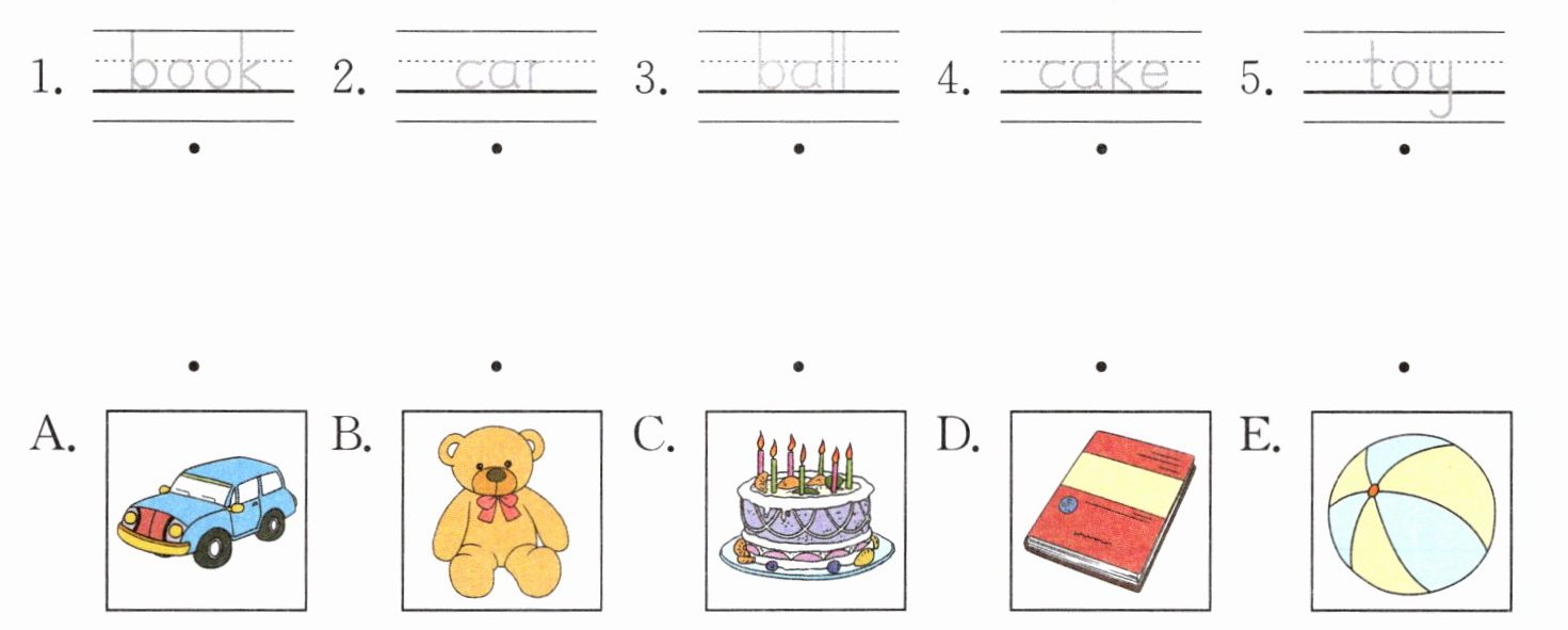 三、根据图片,选择合适的单词抄写在四线三格内。