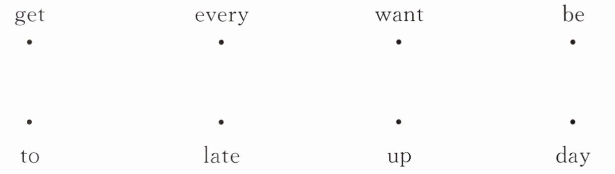 1. get up 起床 2. every day 每天 3. want to 想要 4. be late 迟到