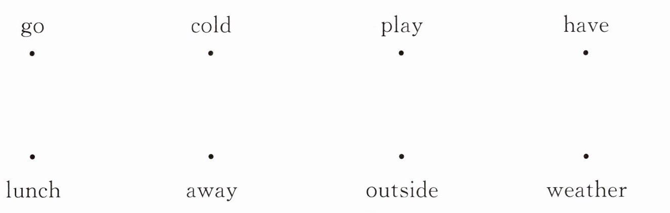 1. go away 走开 2. cold weather 寒冷的天气 3. play outside 在外面玩 4. have lunch 吃午饭
