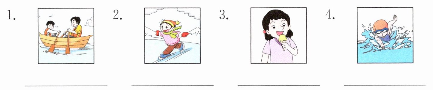 1. go boating 2. go skating 3. eat ice cream 4. go swimming