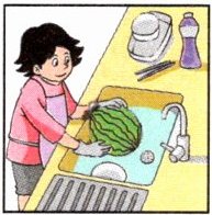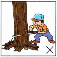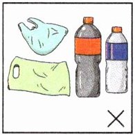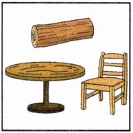 1. cut down 2. many plastic bags 3. wood; tables; chairs 4. water; clean